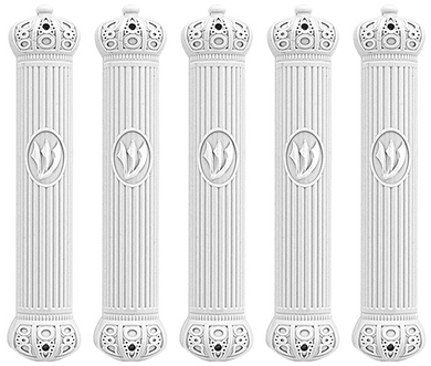 Plastic Mezuzah case With Rubber Seal White With Crown Motif Sold in unit of5 pcs.