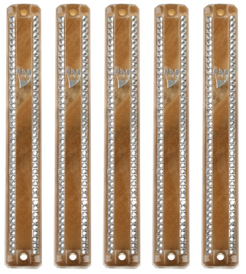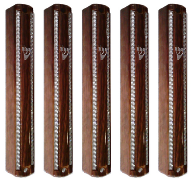Plastic MEZUZAH CASE Brown wood color with Stones Silver shin Waterproof Rubber Cork