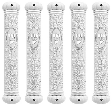 Plastic White Crown Series Mezuzah case1 Ornate Design Sold in unit of 5 pcs.