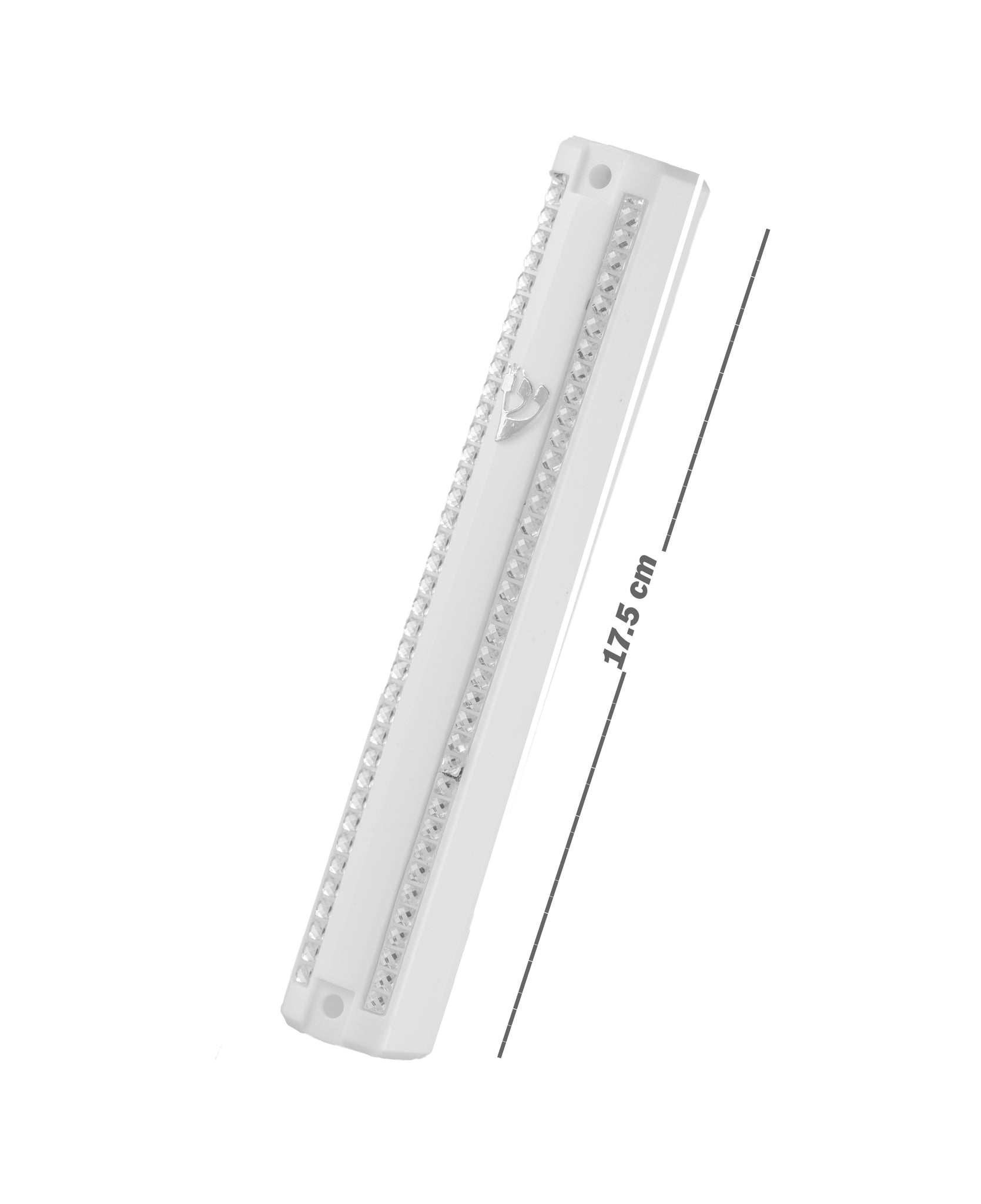 Plastic MEZUZAH CASE WHITE with Stones Silver shin Waterproof Rubber Cork