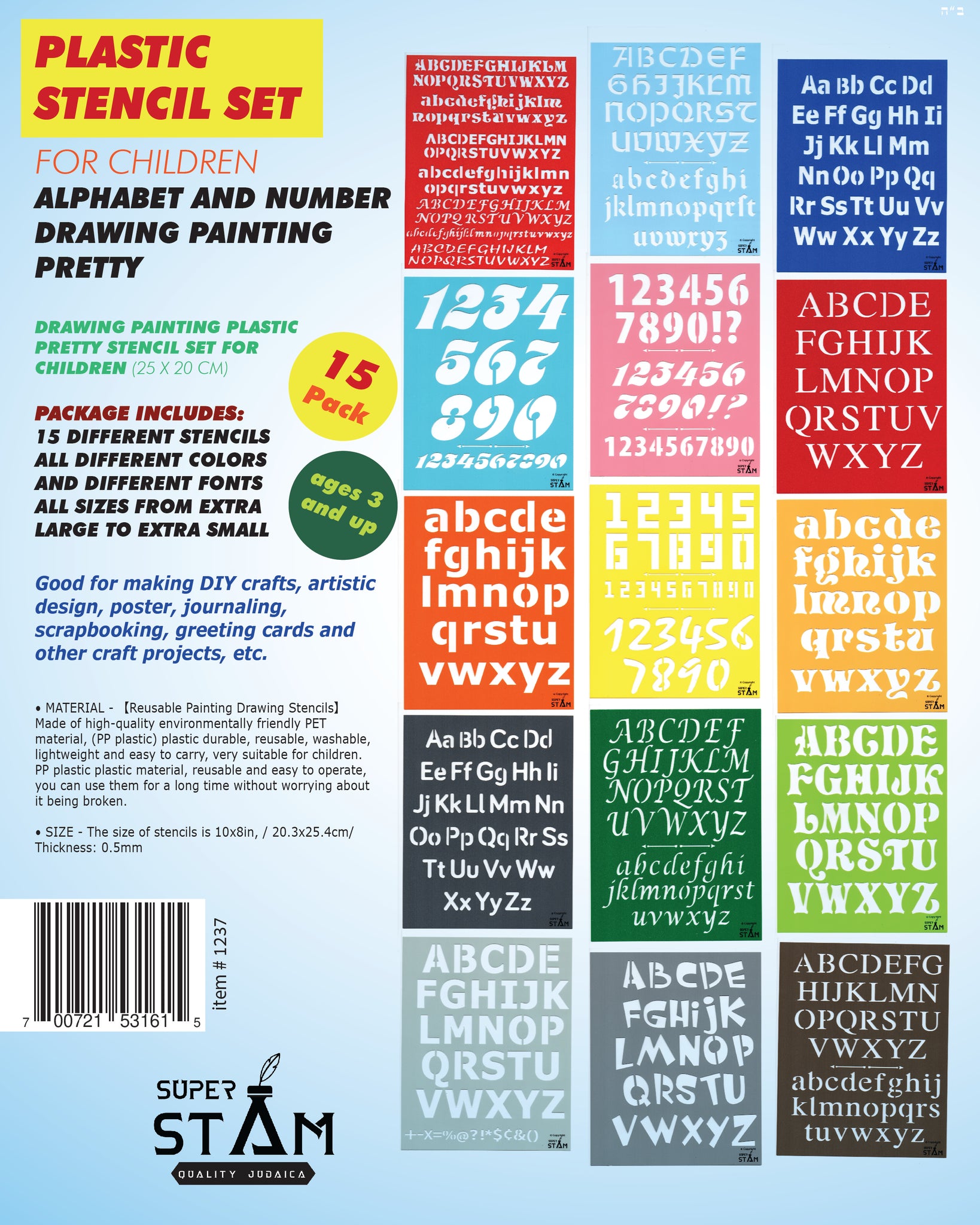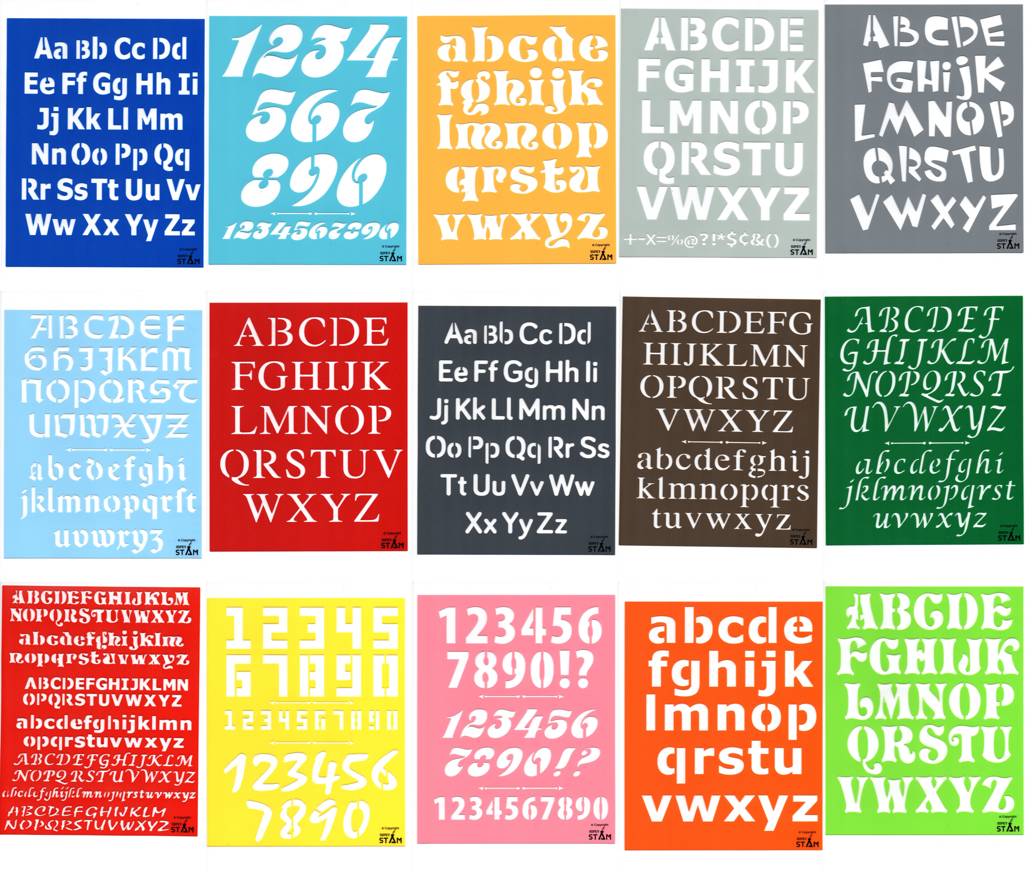 - Package' Includes 15 Different Stencils all different colors and different fonts all sizes from extra large to extra small