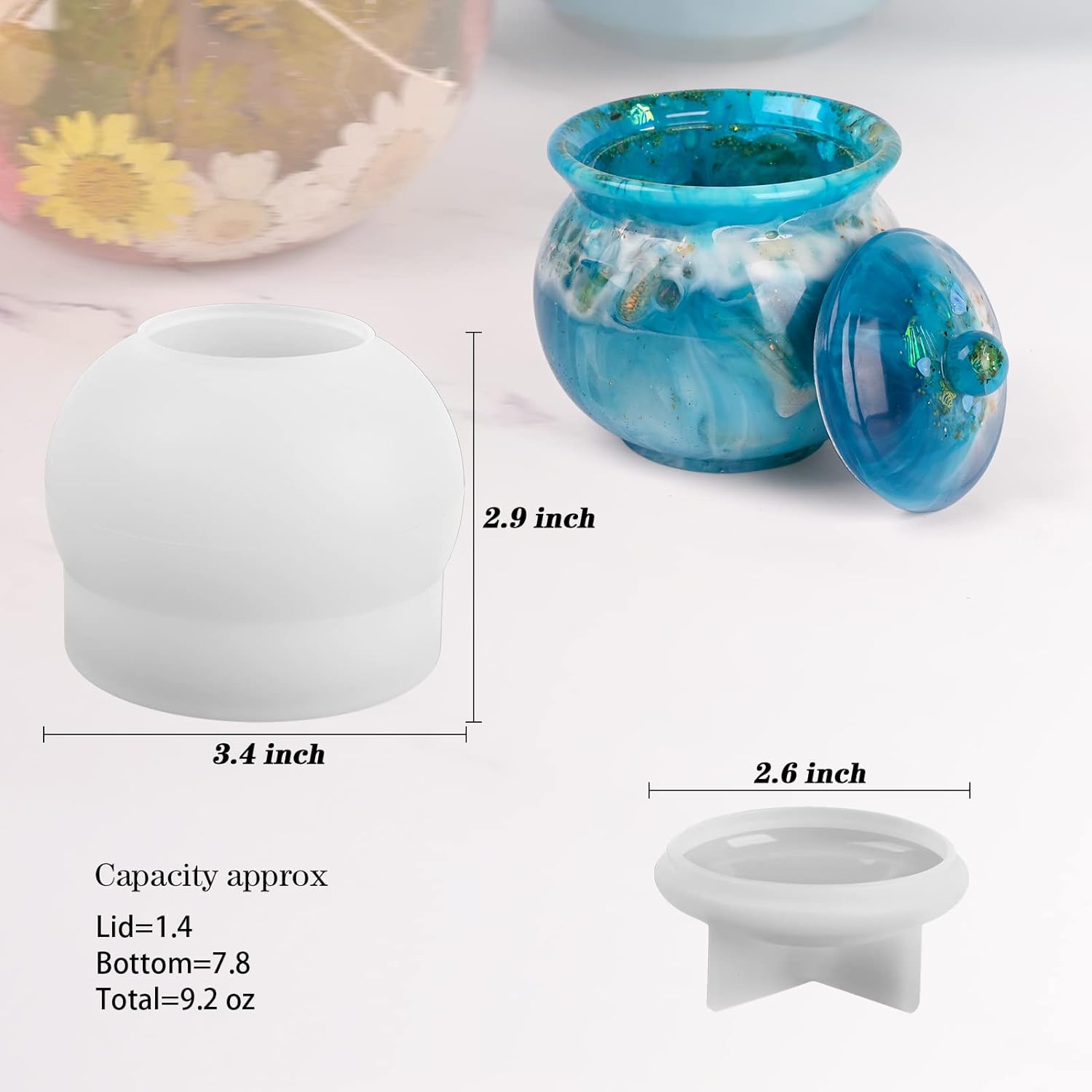 - Product include: The resin jar mold includes one resin jar mold with lid, perfect for DIY enthusiasts. This versatile epoxy resin molds allows you to craft unique storage jars, with a finished size of 3.4 inches in diameter and 3.39 inches in total height. The lid molds make your projects both convenient to store and easy to use.