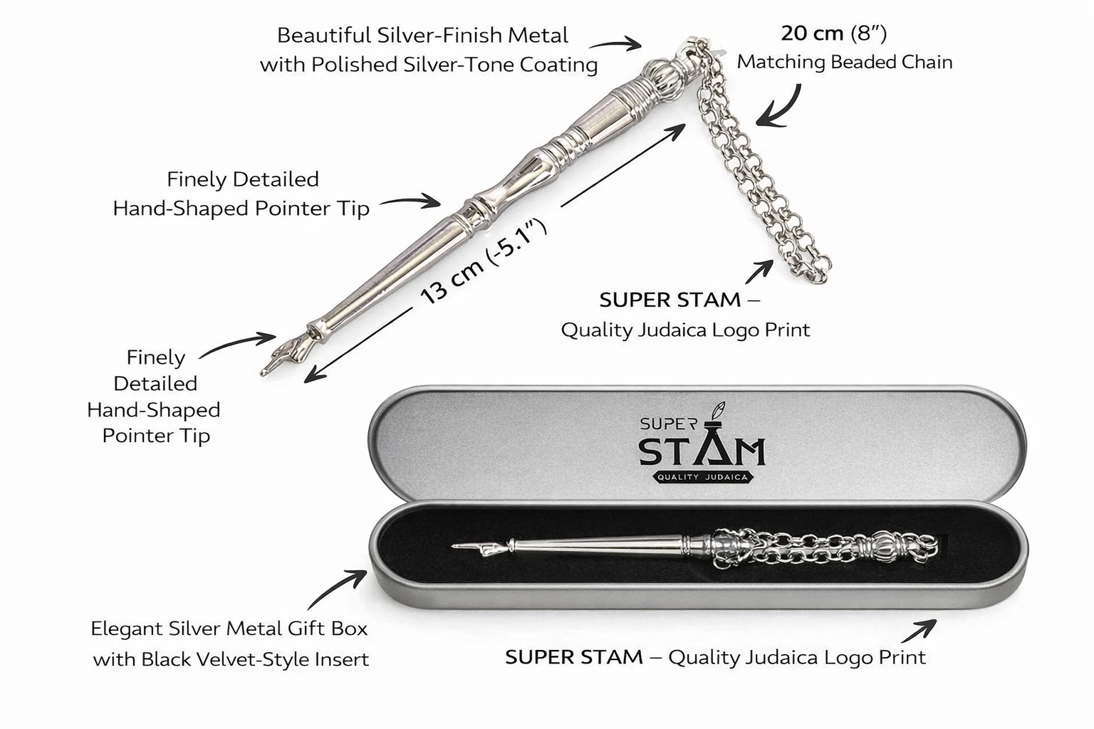 - Butyfull giftl Yad Torah, Torah pointer made from alloy metal, feature asilver plated This item comes with a 20cm bead charm