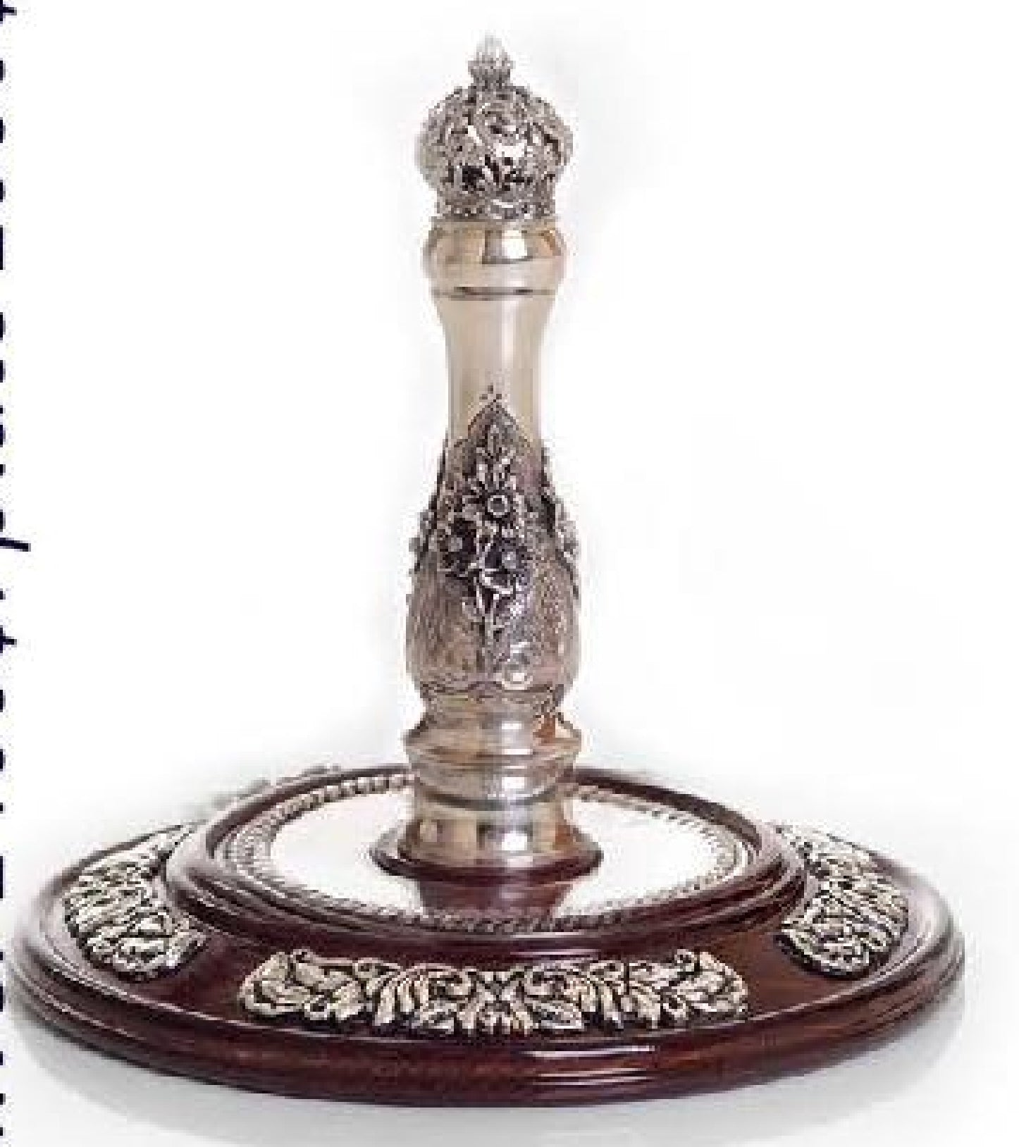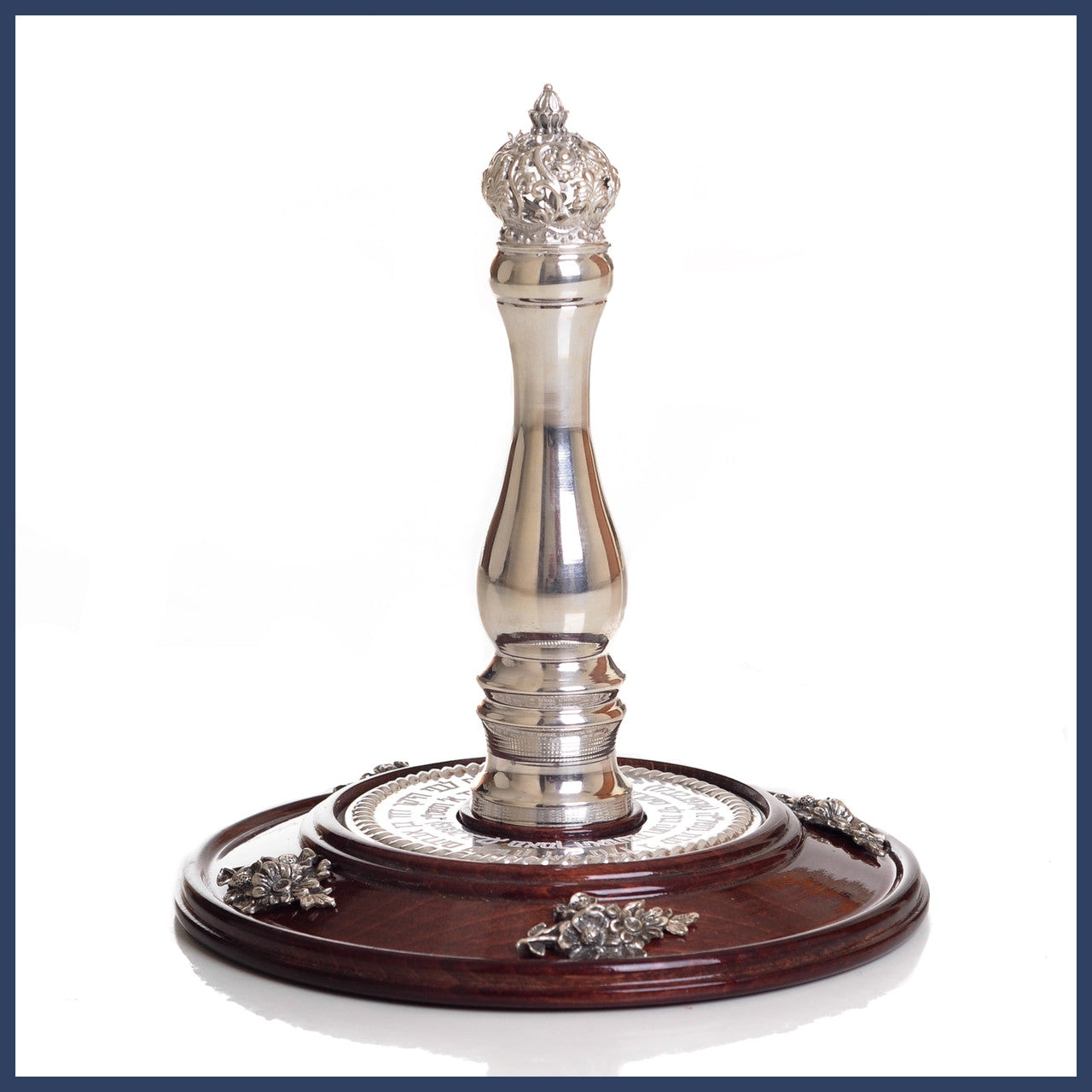 Enhance your Sefer Torah with this magnificent silver Etz Chaim - Torah Rollers. Crafted from .925 sterling silver for a magnificient rich appearance and assembled with a solid wood core. The perfect combination of beauty and strength. Assembled with double interlocking rollers, and a ‘Torah Guard’ to protect the Torah scroll.  |